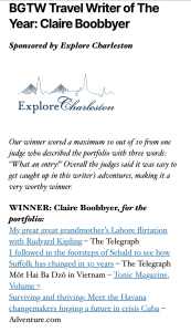 Winner of the BGTW Travel Writer of the Year 2025 award